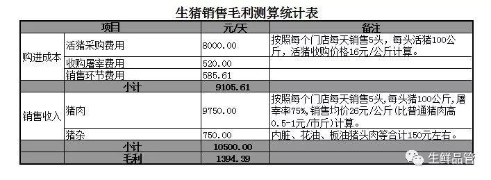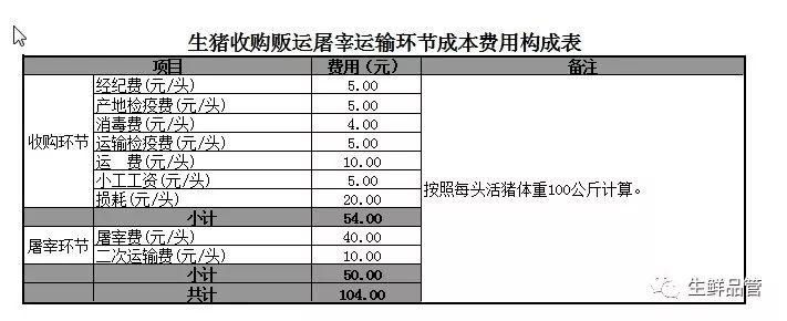生猪屠宰加工销售各环节费用测算模板 6年前 (2019-09-23) 分类:好文收藏 阅读(3085) 本篇文章来源于微信公众号: 生鲜品管 未经允许不得转载:追梦的大鹏 » 生猪屠宰加工销售各环节费用测算模板
