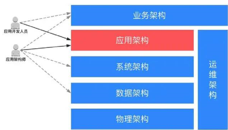 应用架构:由应用架构师负责,他需要根据业务场景的需要,设计应用的层次结构,制定应用规范、定义接口和数据交互协议等。并尽量将应用的复杂度控制在一个可以接受的水平,从而在快速的支撑业务发展的同时,在保证系统的可用性和可维护性的同时,确保应用满足非功能属性要求(性能、安全、稳定性等)。